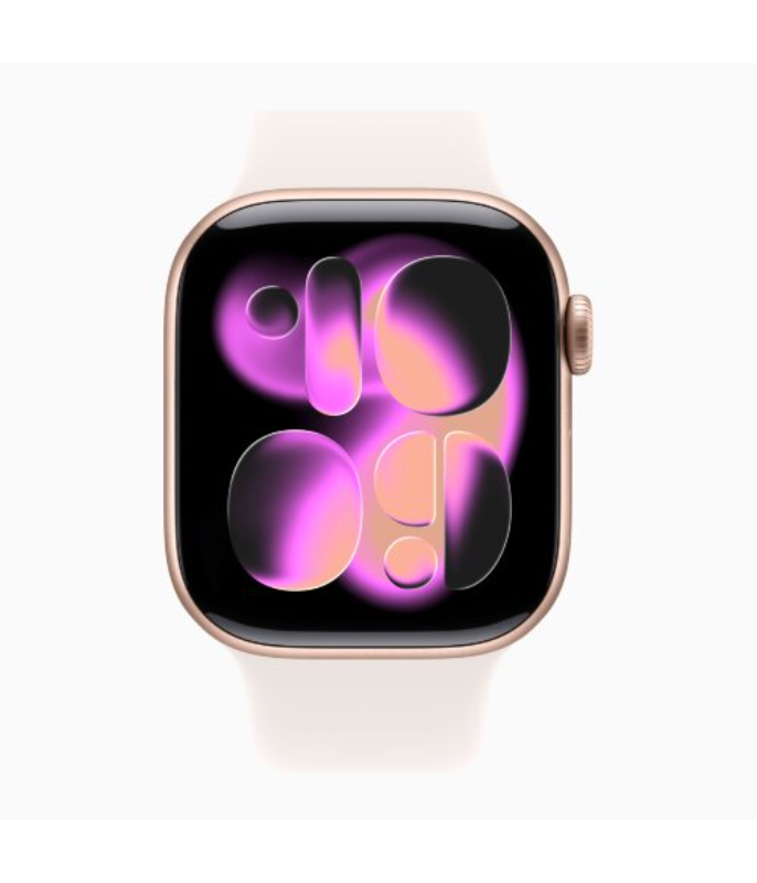 Apple Watch Series 11 46 мм (алюминиевый корпус, розовое золото/«светлые румяна», спортивный силиконовый S/M) MEV64